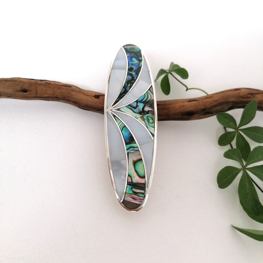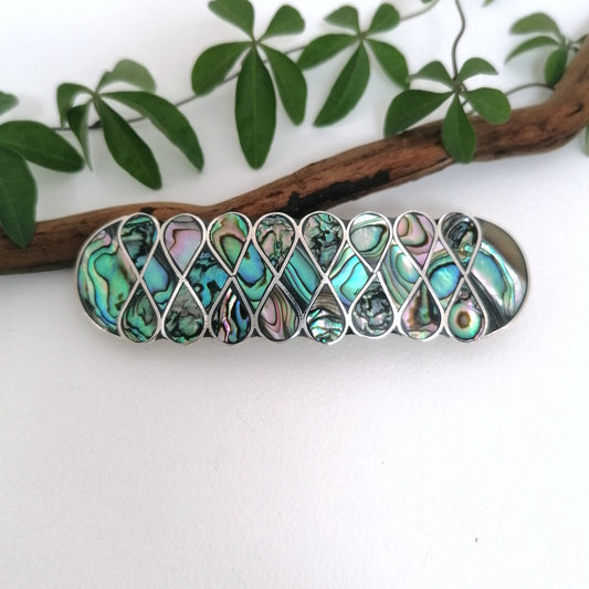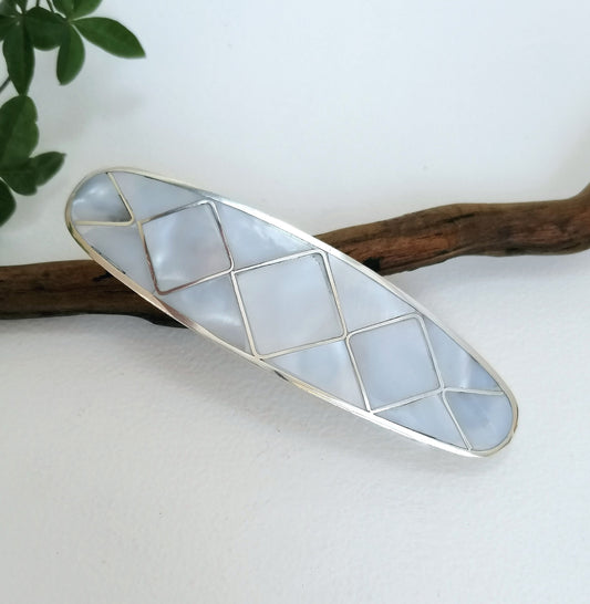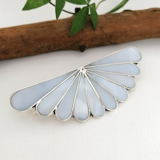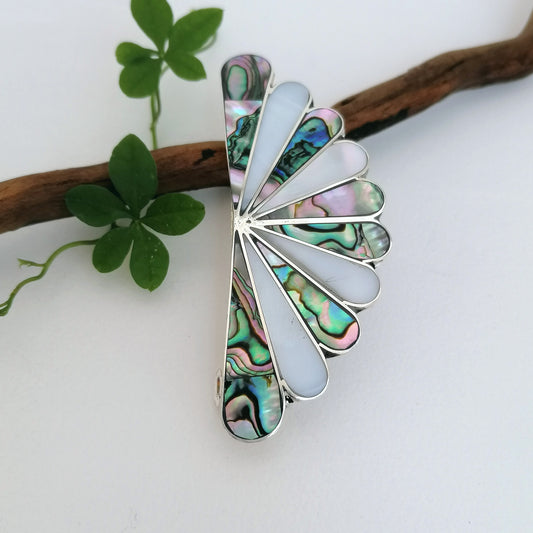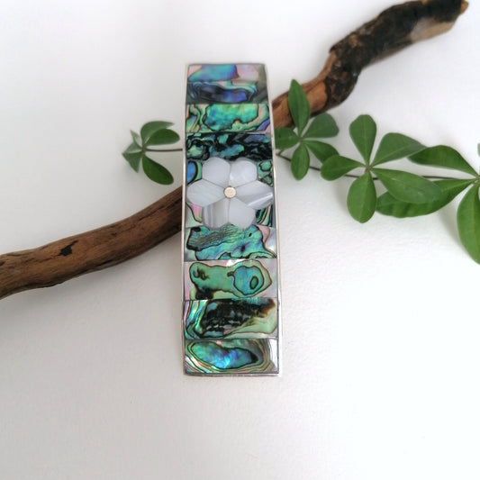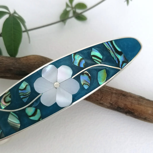 Mother of Pearl Flower & Teal Enamel Hair Barrette