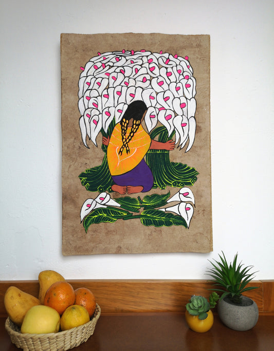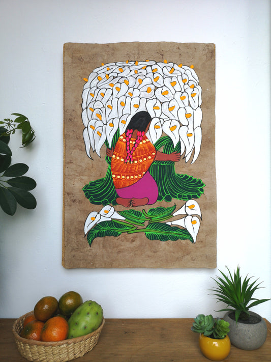 Calla Lily Flower Seller - Bark Painting 24" x 16"