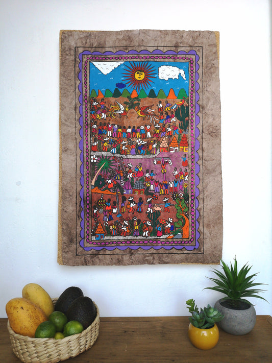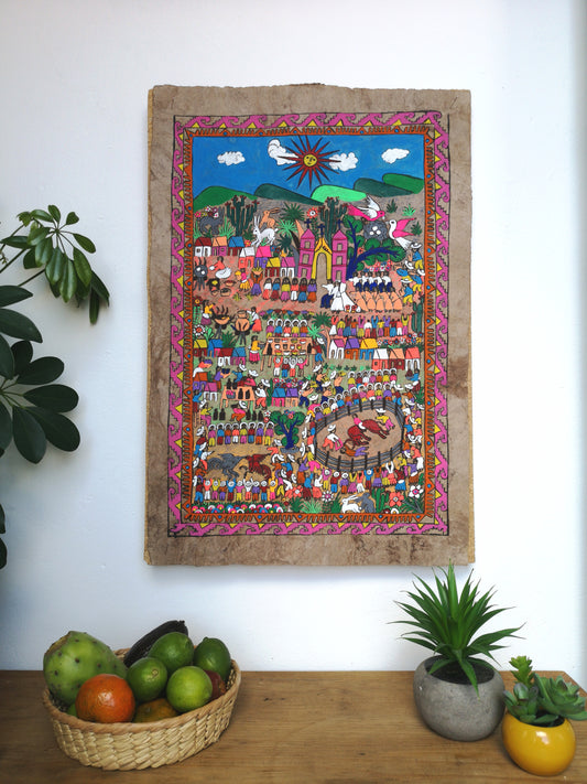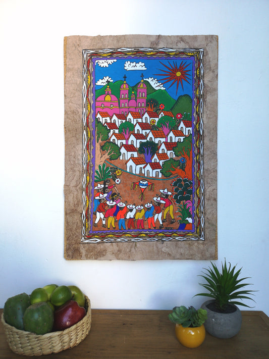 Mexican Fiesta Mission Church - Bark Painting 24" x 16"